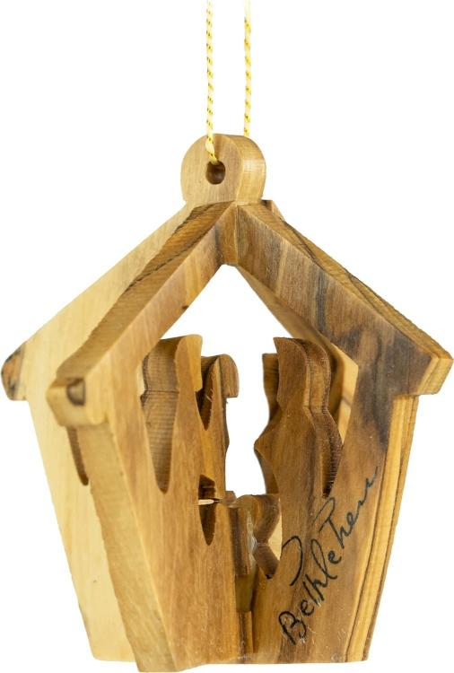 Holy Family Manger Nativity, 3-Dimensional Holy Land Olive Wood Ornament