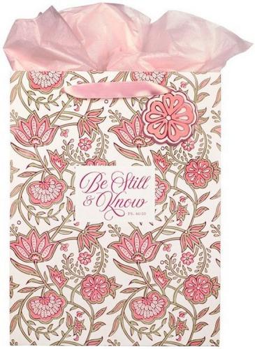 Place your gift into the Be Still Pink Spring Floral Large Portrait Gift Bag that combines a beautiful design with a comforting message. Ideal for times when you want to brighten someone’s day, this gift bag (and the gift you’ll place inside) will communicate love and care.
