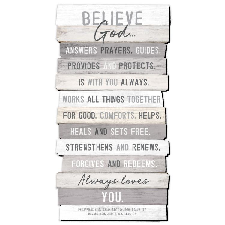 This Wall Decor Integrates A Palette Of Grays, Giving It A Soft Modern Spin On The Popular Rustic Wooden Look With A Powerful Message Of Belief. A Great Focal Piece For Any Home To Remind Those Who Enter To Believe God Will Answer Prayers, Protect, Comfort, Heal, Redeem And Always Love You. A Wonderful Gift For Any Household! – This Gift Makes A Difference. Through Partnership With The Nonprofit, A Better Life For Kids, Orphans And Children With Special Needs Are Given Healthy Meals, Clean Water, Safe Housing, And Education Opportunities In Ghana, Africa.