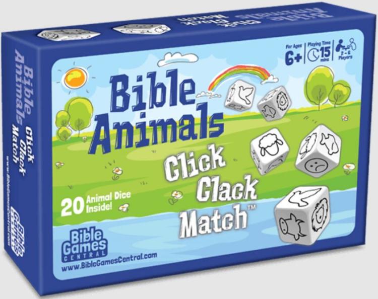 Have a rolling good time with this clickety-clackety dice game! With 20 animal dice and 56 beautifully designed cards, Bible Animals Click Clack Match is the perfect game for both young and old!
