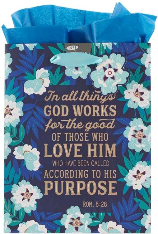 Support a friend with a care package packed in the God Works For Good Blue Floral Medium Gift Bag to show your care.