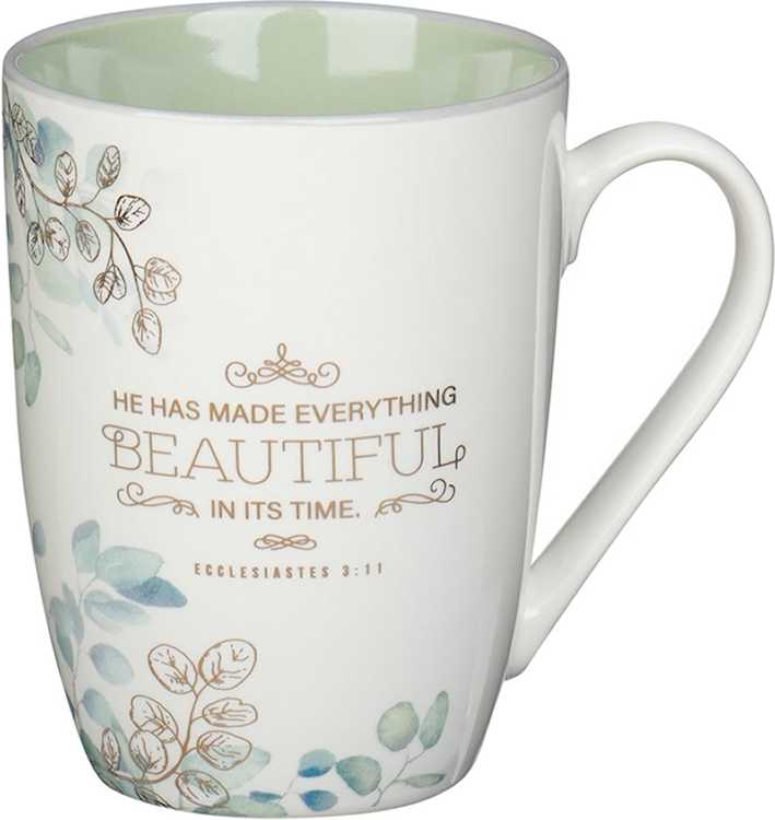The peaceful floral backdrop of the Beautiful in its Time Blue Floral Ceramic Mug offers a beautiful setting for your morning coffee or afternoon tea. Let this mug encourage you that God has a beautiful plan for your future.