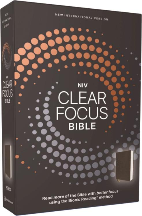Finally, a resource to keep your mind from wandering while reading the Bible!Have you ever realized you’ve read a passage multiple times in a row and still can’t recall what it says? The NIV Clear Focus Bible uses Bionic Reading(R), which enables you to read more and with greater comprehension. Developed by Swiss scientists, Bionic Reading bolds the portion of each word most critical for comprehension and guides the eye from word to word over the text. This allows the brain to stay engaged, identify previously learned words, and absorb information without losing focus.In a world dominated by shallow forms of reading, the NIV Clear Focus Bible is the first-ever Bible available with Bionic Reading and encourages more in-depth understanding of written content. Imagine a quiet time where you read longer, read with more clarity, and give Scripture the undivided attention it deserves.Features:Full text of the accurate, readable, and clear New International Version (NIV), the most widely read modern-English Bible translation, trusted for its combination of accuracy, readability, and beautyApplication of the award-winning Bionic Reading text method, enabling you to read more and with greater comprehension in a hectic and noisy worldReading plansTwo ribbon markersLeathersoft cover lies flat when openType size: 7.8