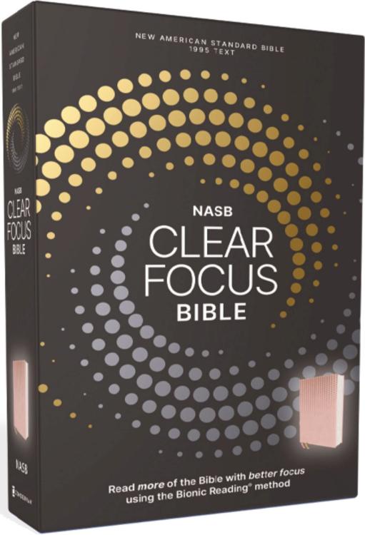 Finally, a resource to keep your mind from wandering while reading the Bible!Have you ever realized you’ve read a passage multiple times in a row and still can’t recall what it says? The NASB Clear Focus Bible uses Bionic Reading(R), which enables you to read more and with greater comprehension. Developed by Swiss scientists, Bionic Reading bolds the portion of each word most critical for comprehension and guides the eye from word to word over the text. This allows the brain to stay engaged, identify previously learned words, and absorb information without losing focus.In a world dominated by shallow forms of reading, the NASB Clear Focus Bible is the first-ever Bible available with Bionic Reading and encourages more in-depth understanding of written content. Imagine a quiet time where you read longer, read with more clarity, and give Scripture the undivided attention it deserves.Features:Full text of the New American Standard Bible, 1995 TextApplication of the award-winning Bionic Reading text method, enabling you to read more and with greater comprehension in a hectic and noisy worldReading plansTwo ribbon markersLeathersoft cover lies flat when openType size: 7.8