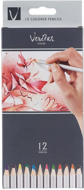 Unleash your creativity with Veritas Colored Pencils. The small set holds 12 Colors: Red, Black, Brown, Blue, Green, Yellow, Hot Pink, Purple, Orange, Dark Blue, Dark Green and Tan. Use these colors by themselves for beautifully deep coverage, shade them from pale to light or layer them to create new hues.