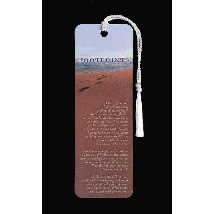 The classic Footprints story is featured with a beach scene design. Laminated durable card stock bookmark is about 6″” long. An especially good gift for Christian groups of any kind! In packages of 12. Words are copyright 1986 Margaret Fishback Powers, created Thanksgiving 1964, all rights reserved, FOOTPRINTS(R) and FOOTPRINTS IN THE SAND(R) are trademarks owned by Margaret Fishback Powers, used by permission.
