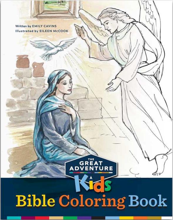 This 10” x 13” Bible Story Coloring Book includes almost fifty pages of illustrated Bible stories designed to help teach children the story of salvation history in chronological order.