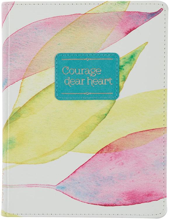 Fight fear on the pages of the Courage Dear Heart Citrus Leaves Handy-size Faux Leather Journal and live to face another day filled with courage.