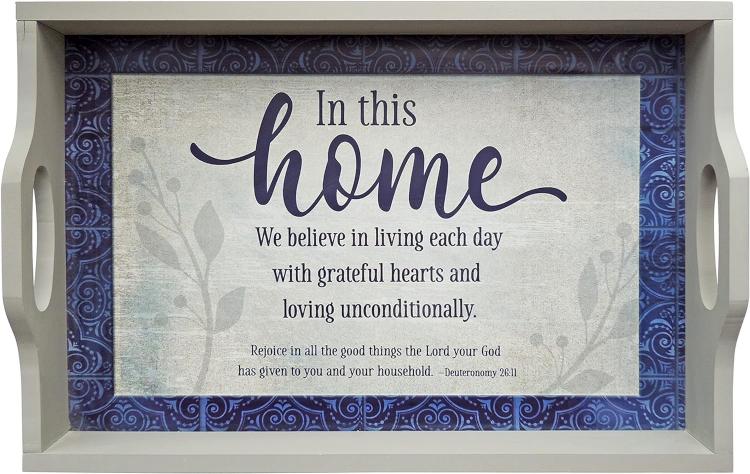 In This Home collection features a bold blue as the primary color, often associated with peace, loyalty, and love, all appropriate for this collection! The sentiment expressed on the pieces certainly reflects these values.