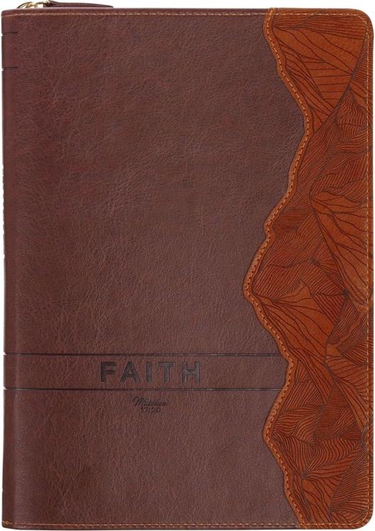 As part of the Faith Mountain Summit Collection, the Faith Chestnut Brown Faux Leather Classic Journal with Zipper Closure Is sure to encourage and uplift any man who receives it. Consider pairing this journal with other items in this collection, such as a Bible cover, spiral journal, stainless steel travel tumbler, stainless steel water bottle, puzzle, gift bag, bookmark, ceramic mug, pen, and a Box of Blessings.