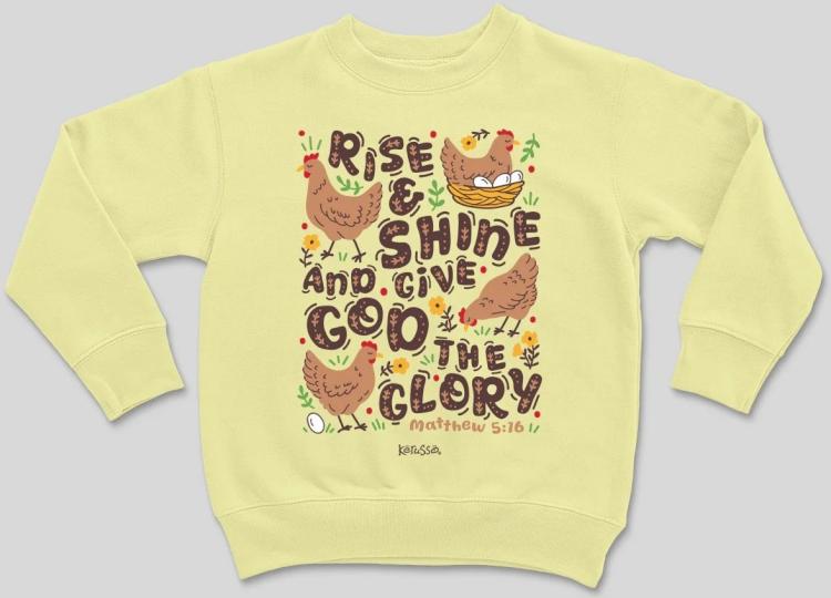 Brighten up your child s day with the Rise & Shine Kerusso Kidz Sweatshirt in Pale Yellow. This cheerful sweatshirt is a warm reminder that kids can shine the light of Jesus wherever they go.