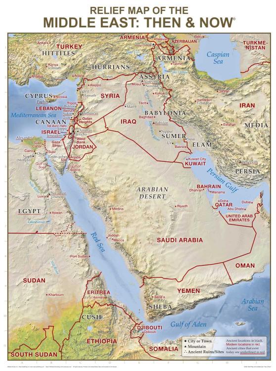 Middle East Relief Map Then And Now Wall Chart Laminated