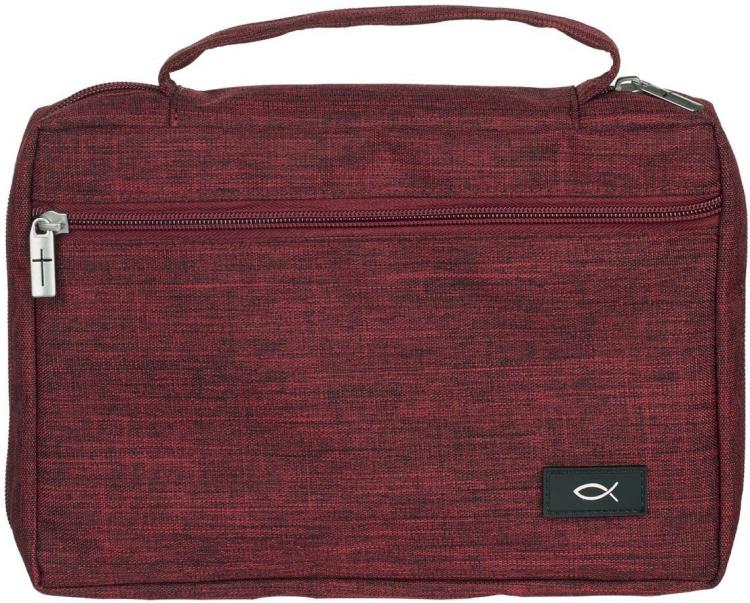 Protect your Bible with the Cranberry Red Poly-canvas Value Bible Cover with Ichthus Patch. This low-cost but durable Bible case is all you need to keep your most prized possession safe from daily wear and tear.