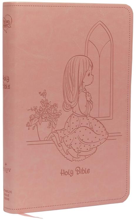 This Precious Moments Catholic Bible is the perfect choice for celebrating the special milestones in the life of your child. This beautiful gift can become a usable keepsake for Baptism or First Communion, and it can be the Bible your child carries to Mass. This contains the full Catholic canon, along with helps such as prayers, reading plans, and helpful verses. And the beautiful full-color Precious Moments artwork will invite your child into the pages of Scripture.Precious Moments, created by artist Sam Butcher over 40 years ago, was inspired by faith, family, and friends. Since then, it has touched the lives of millions throughout the world and serves as a symbol for the emotions experienced during life’s milestones, such as weddings, births, and christenings, along with special, everyday moments.The NRSV Catholic Edition of the Bible includes the complete Catholic Bible and has received the imprimatur of the United States Conference of Catholic Bishops for personal and devotional use.Features include:Full-color Precious Moments artwork throughout with Bible verses to captivate and engage childrenImprintable cover and a presentation page to make this a Bible your child will cherishMary’s Song of PraiseOur Father prayerMiracles of Jesus list9-point print size