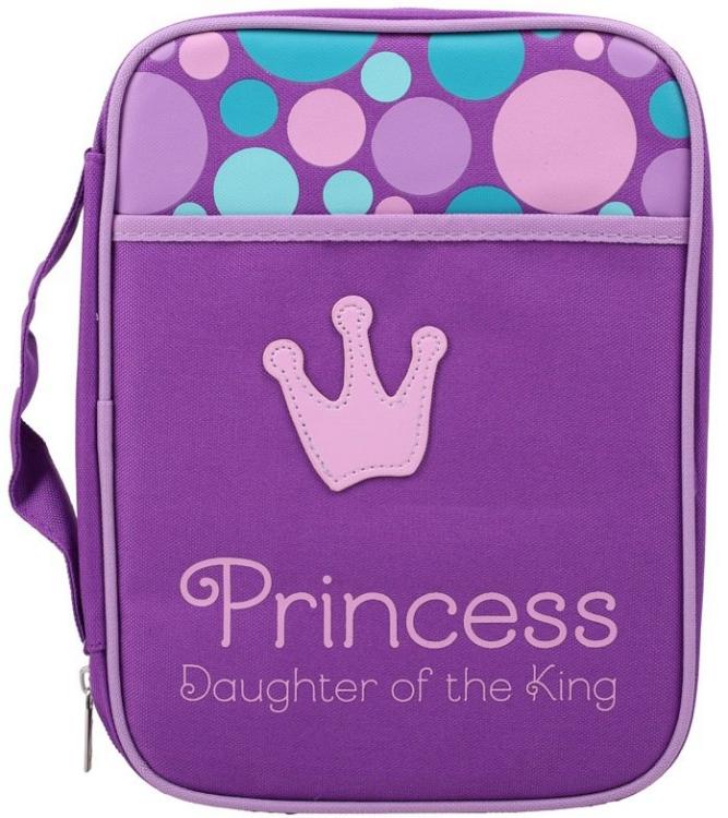 Embrace your royal identity with this delightful Princess Daughter of the King Bible cover. Featuring a regal crown design on a purple canvas background with cheerful pink and blue polka dots, this cover is both playful and powerful a lovely reminder of God s love and your place in His family.