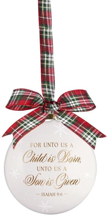 Celebrate the timeless message of Christmas with the A Child is Born White Ceramic Christmas Ornament – the perfect accessory to add the meaning of Christmas to your tree.