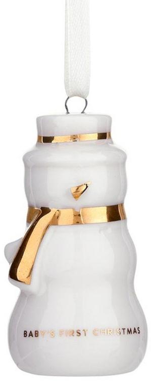 Baby, it’s cold outside! This cheerful ceramic snowman is ready to bring a little winter magic to the tree for Baby’s First Christmas. With a glossy finish and classic charm, it’s a keepsake to love for years to come