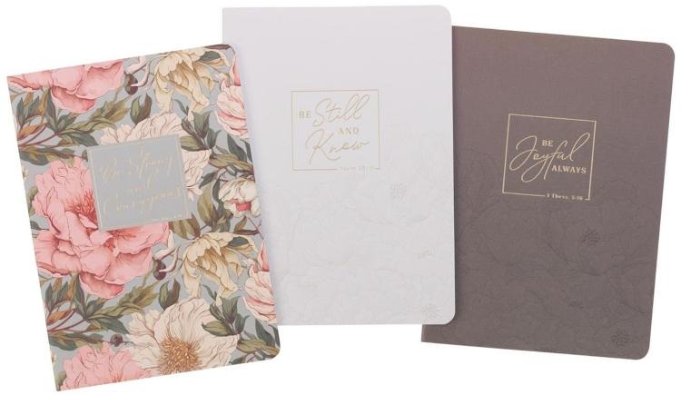 Whether you re writing at home, in Bible study, or on the go, the Strong and Courageous Delicate Pink Dahlia Notebook Set is a stylish and meaningful way to take notes. This trio of notebooks is a lovely addition to your own quiet time routine or a thoughtful gift for a friend, sister, or mentor who finds strength and stillness in God s Word.