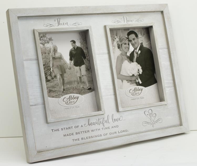 This rustic looking frame is crafted of MDF and designed to hold two 4″ x 6″ photos.