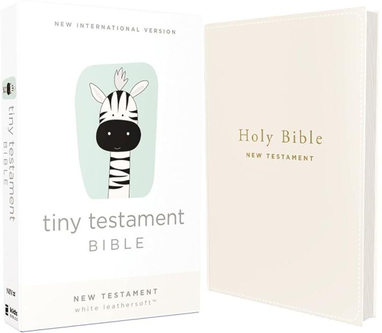 Pocket-sized New Testament ideal for baby showers, baptisms, christenings, and baby dedications.With its tiny size and beautiful LeathersoftTM binding, the NIV Tiny Testament will look adorable as the perfect meaningful addition to a baby’s nursery and make a lovely keepsake as they grow. Featuring the New International Version (NIV) of the Bible, today’s most popular modern-English translation and Zondervan’s exclusive NIV Comfort Print(R) typeface for ease of readability.Features:Complete New Testament text of the accurate, readable, and clear New International Version (NIV)Pocket size: 2.75 x 4.25 inchesTwo-piece gift box perfect for gift givingBeautiful Leathersoft cover with gold foil stampingArticles to encourage spiritual growth:Getting to Know JesusPromises from the BiblePerspectives from the BibleDouble-column formatExclusive Zondervan NIV Comfort Print(R) typeface for enhanced readabilityPrint size: 5The New International Version (NIV) is the world’s bestselling modern-English Bible translation-accurate, readable, and clear, yet rich with the detail found in the original languages. The NIV is the result of over 50 years of work by the Committee on Bible Translation, who oversee the efforts of many contributing scholars. Representing the spectrum of evangelicalism, the translators come from a wide range of denominations and various countries and continually review new research to ensure the NIV remains at the forefront of accessibility, relevance, and authority. Every NIV Bible that is purchased helps Biblica translate and give Bibles to people in need around the world.