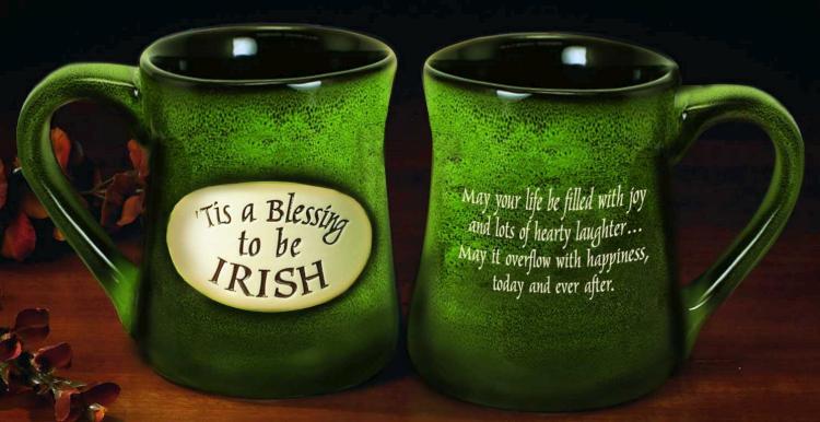 Pottery-style mug is crafted of microwave/dishwasher safe stoneware, with raised design on front and message on back. Gift boxed. 4.75″ high